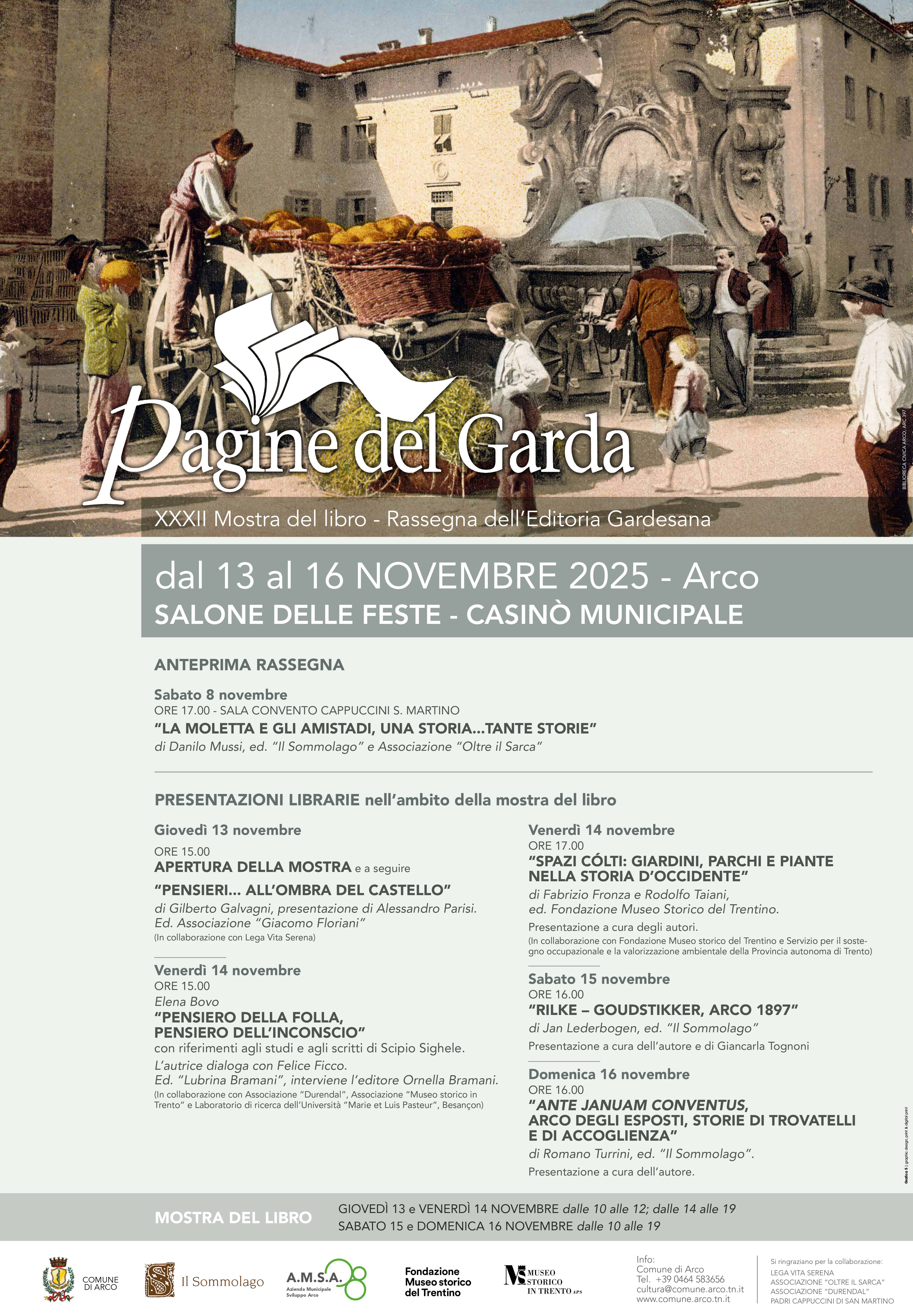 - ORE 16.00 “RILKE – GOUDSTIKKER, ARCO 1897” di Jan Lederbogen, ed. “Il Sommolago”. Presentazione a cura dell’autore e di Giancarla Tognoni.